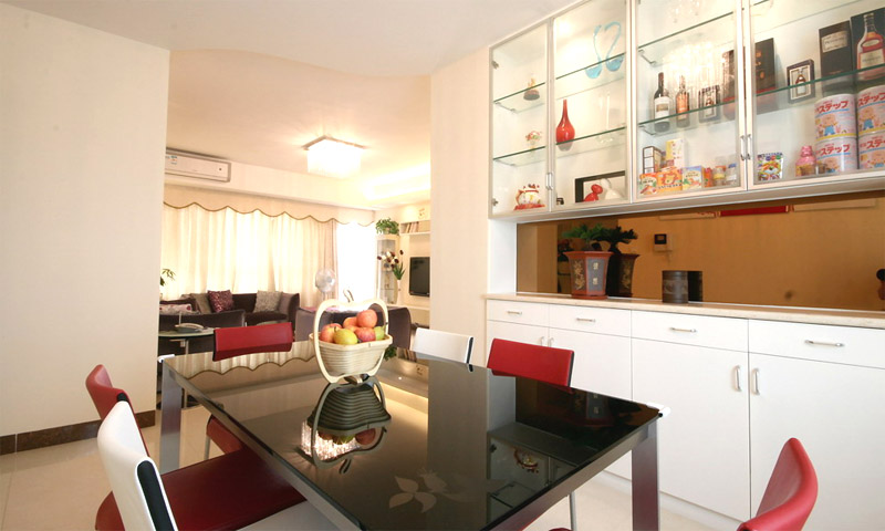 | 案例說明 | 本案重在綈造一個(gè)溫馨舒適的家,盡量利用空間,簡潔的色彩搭配來突出主題。主人喜歡白色簡約風(fēng)格,所以一切重點(diǎn)用軟裝材質(zhì)來點(diǎn)綴,空間顯得靈動(dòng),暗紫色的布藝沙發(fā),紅色的掛畫,黑色的餐桌,紅白間隔的椅子,在整個(gè)象牙白里面跳躍起來,讓空間生動(dòng)舒服,這就是家的感覺,簡潔而不簡單。 | ||